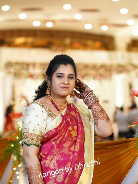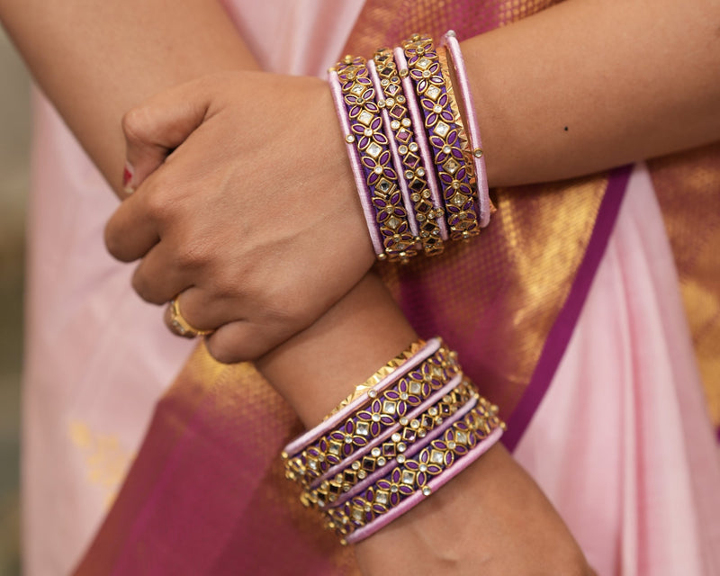 Creating exquisite custom bridal bangles is what Kangan By Dhruthi is best known for! Make & customize your dream silk thread kangan set with our handcrafted collections, perfectly designed for your special wedding day.