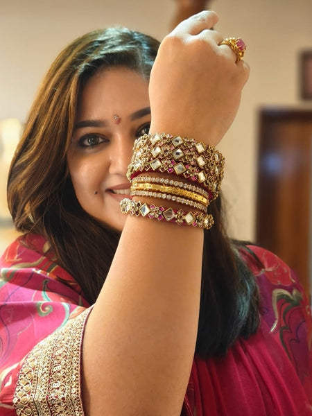 See how our handcrafted bangles shine when worn, adding elegance and charm to every look.