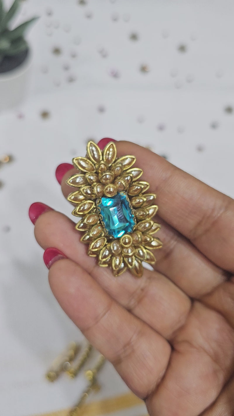 Blue Crystal Saree Pin